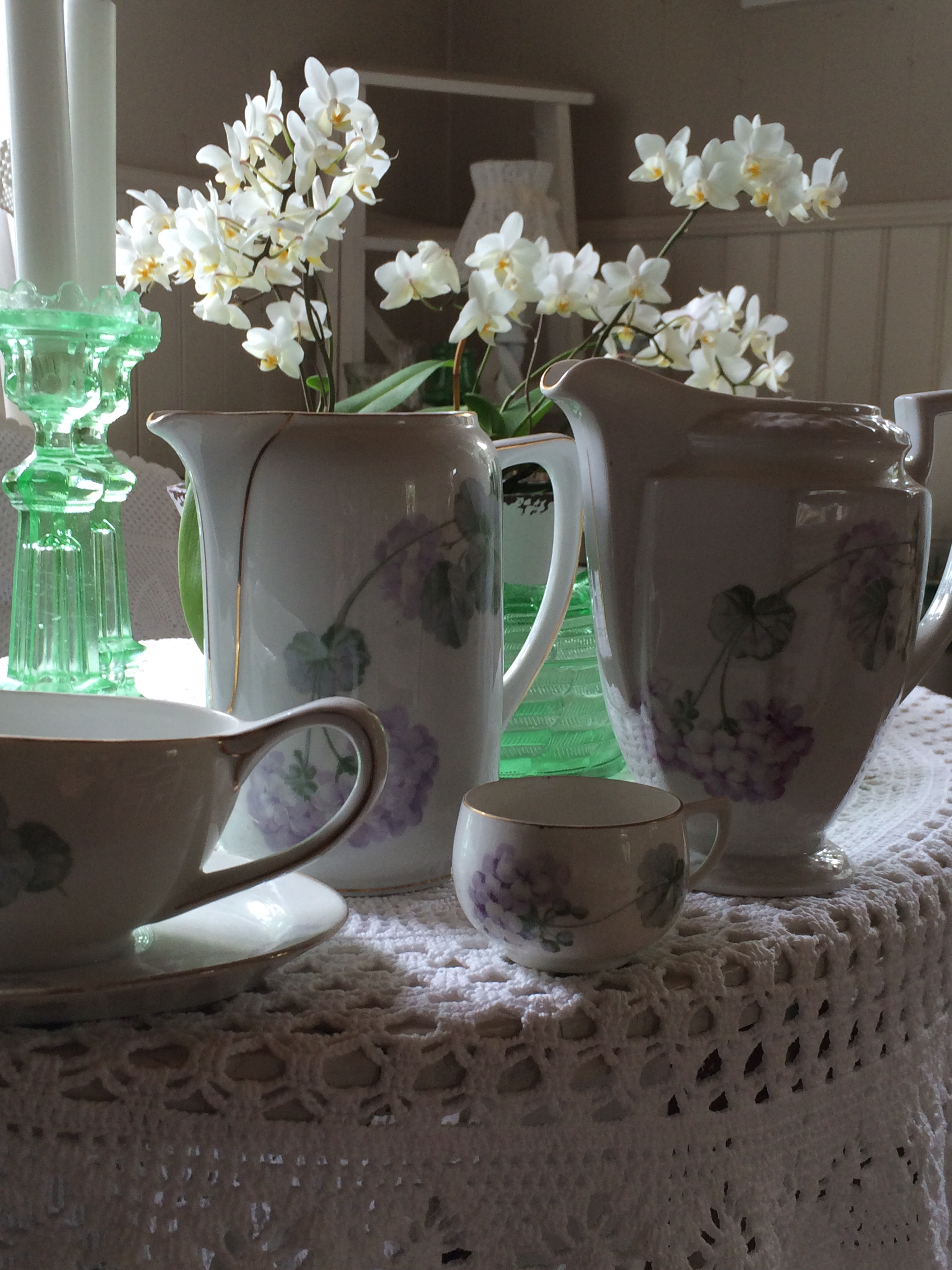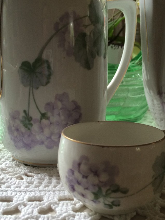 Och även gammalt porslin med pelargonmönster