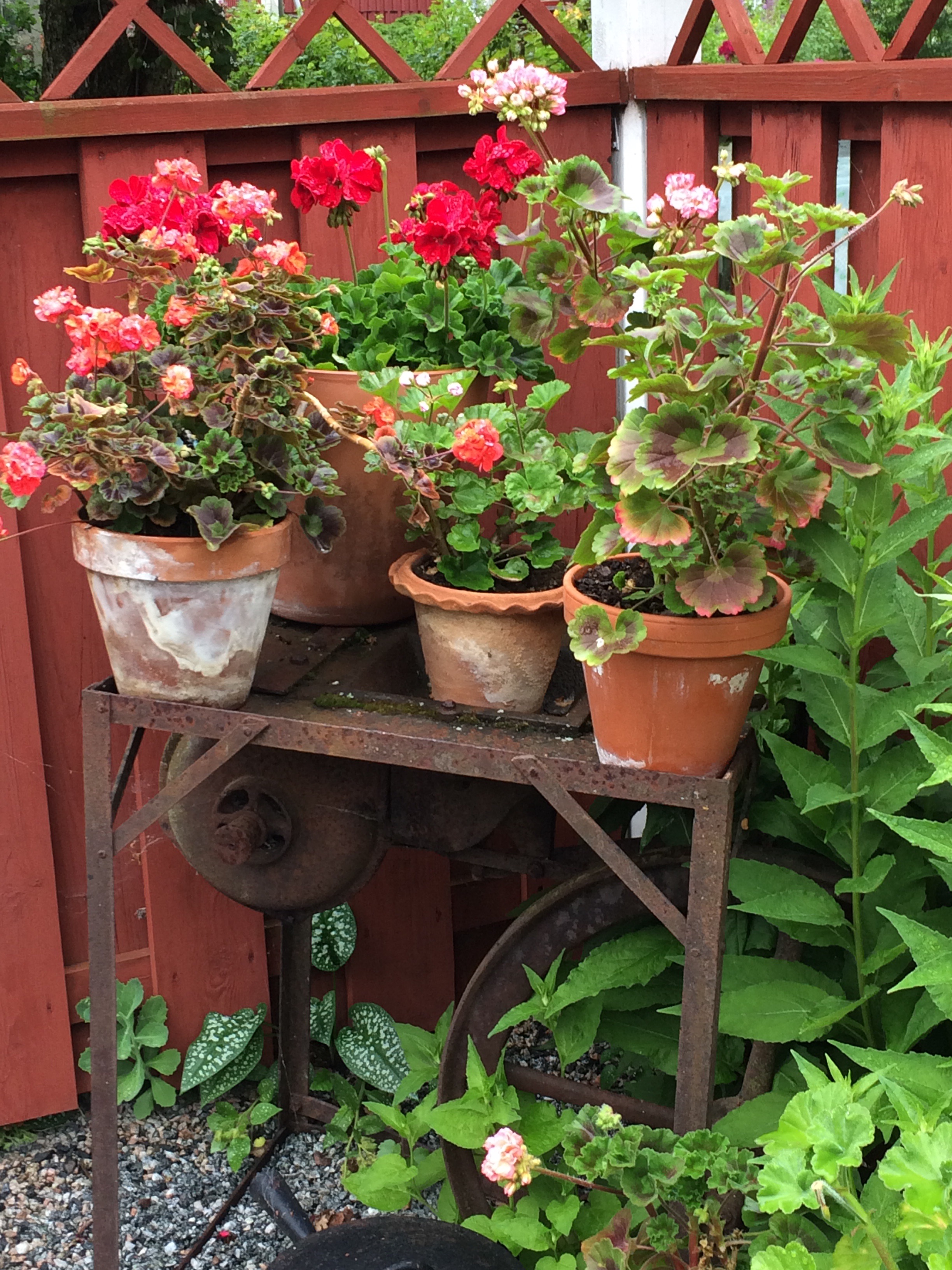 Mina favorit pelargoner,den första Afton,fick jag för ca 20 år sedan av min svägerska Barbro Fredman som driver Kafé Bockhammar o Pelargonförsäljning med sin man CarlErik,värt ett besök..Den andra rosenpelargonen Denise,står mig varmast om hjärtat❤️då mitt älsta älskade barnbarn heter så..