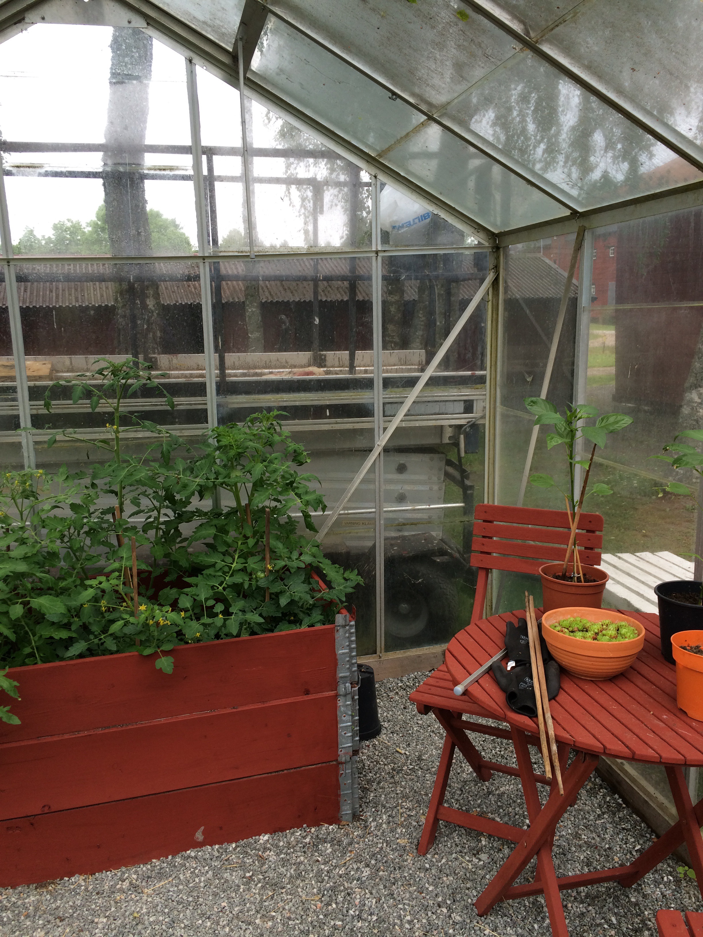Annars är vår gård från 1909.så det passar med lite gammalt här o där,tre växthus,friggebod,timmerhus,garage och vedbod får också plats på gården