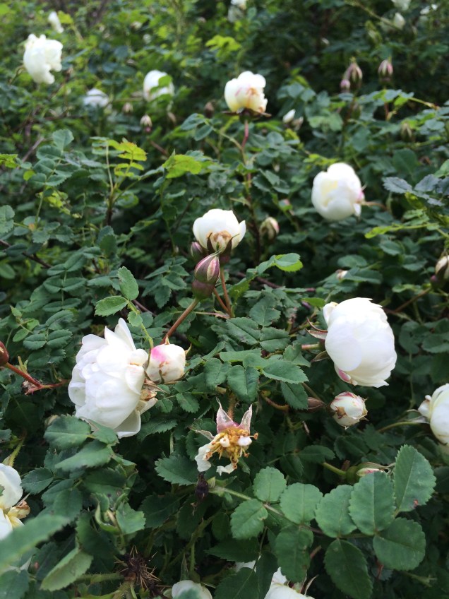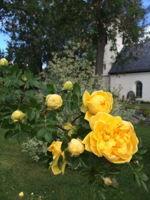 Efter min dagliga långpromenad,där man ser en massa nya växter som blommar nu..den söta gula ros busken vid kyrkan,den alltid lika vackra nyponrosen och den vit blommande rosbusken efter vägen gör att man njuter varje km…