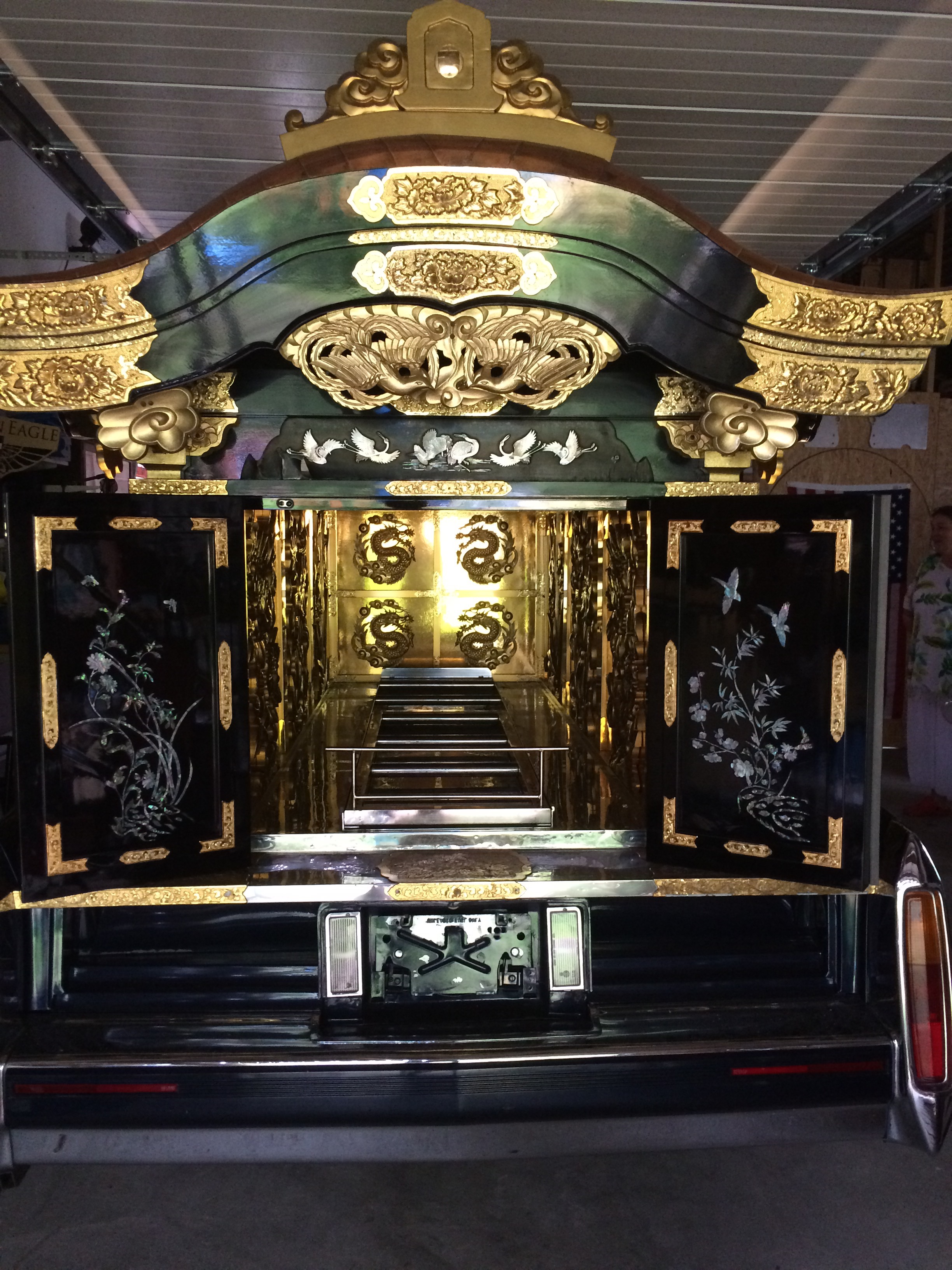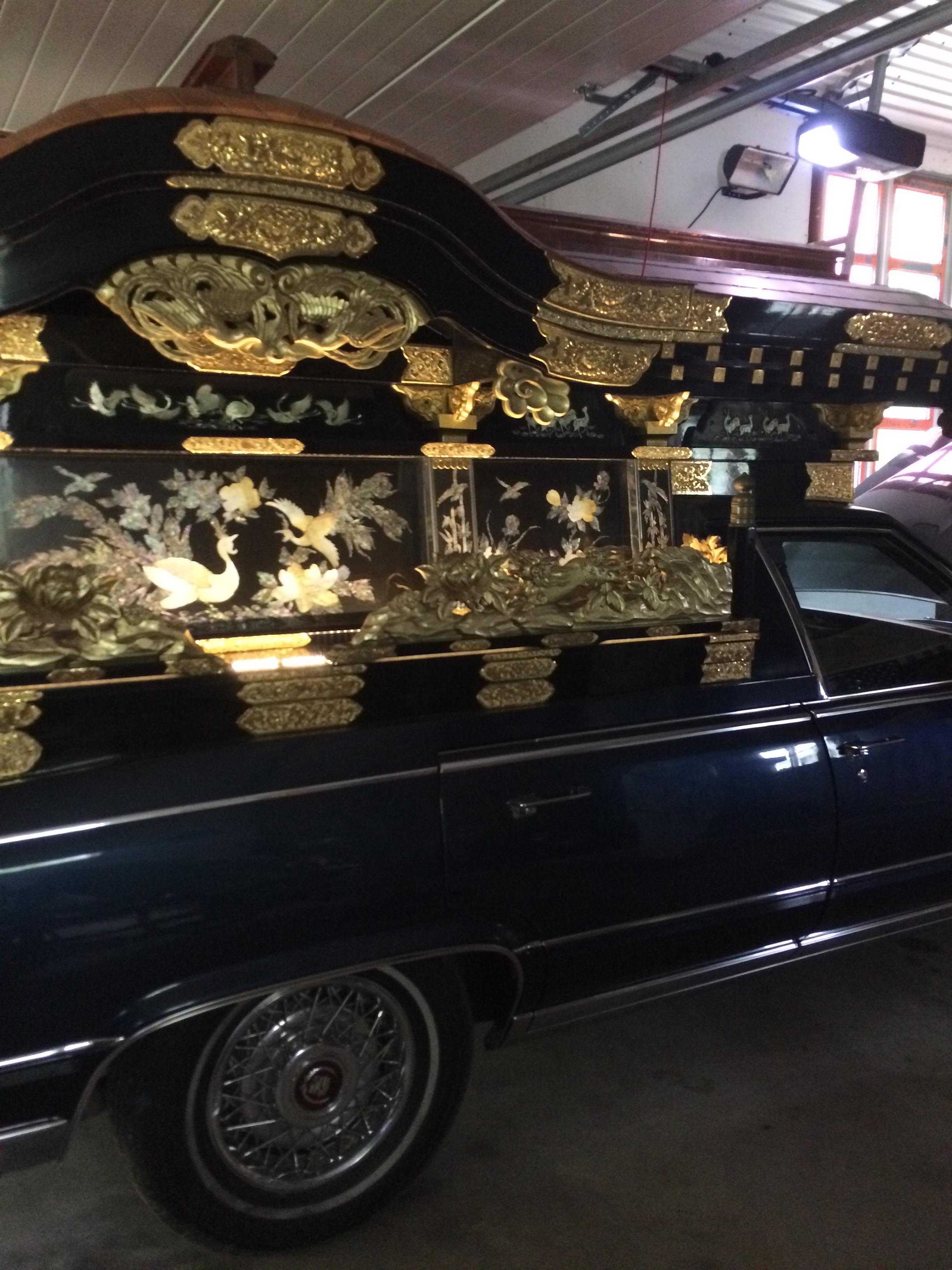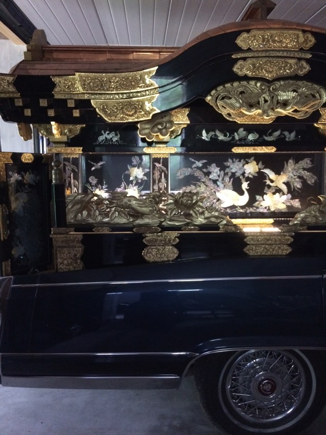 Utanför en bit låg ett Loppis vi besökte,ja ibland kan man hitta de mest udda saker på ett loppis som tex.en buddistisk begravningsbil😚