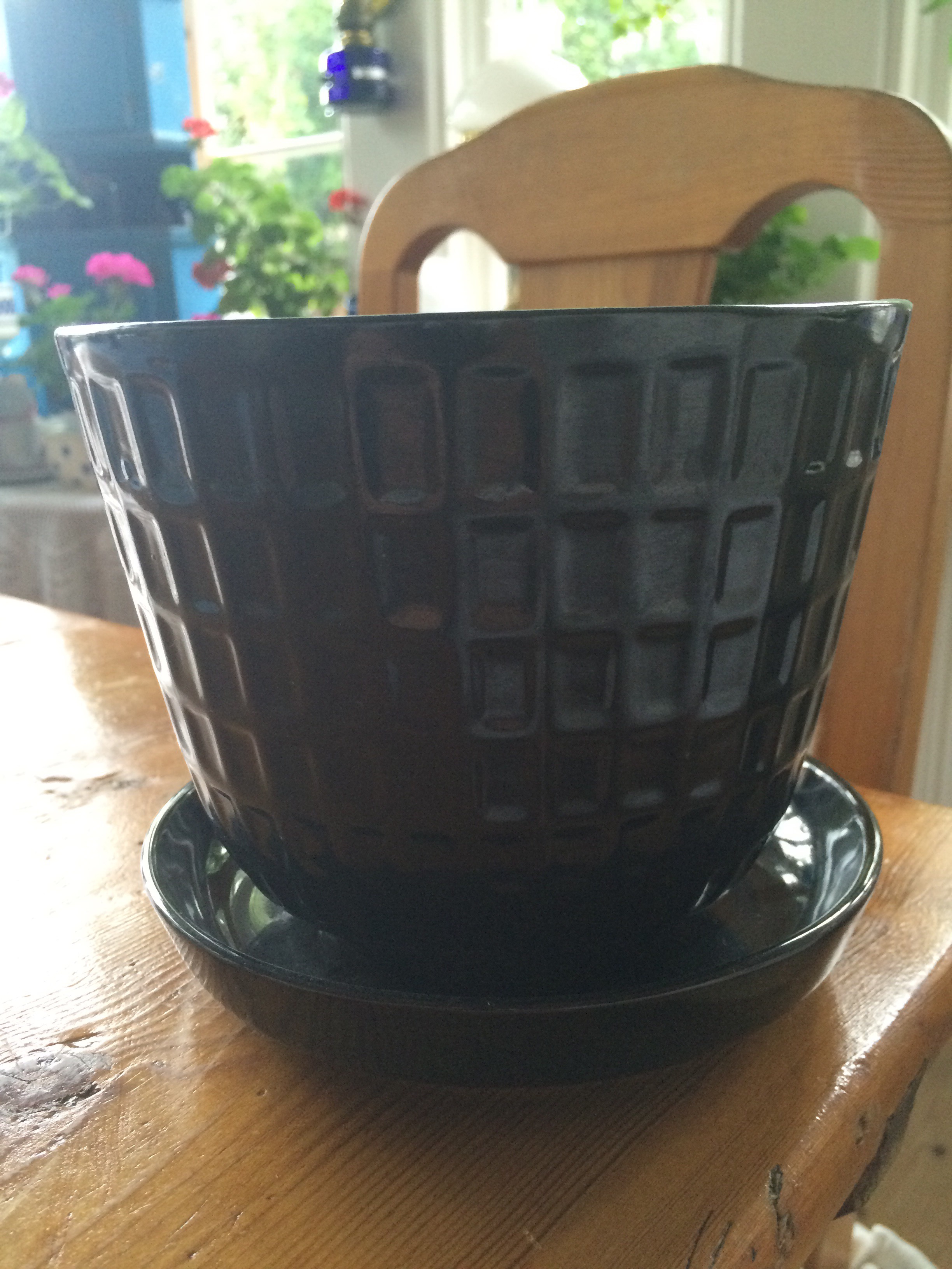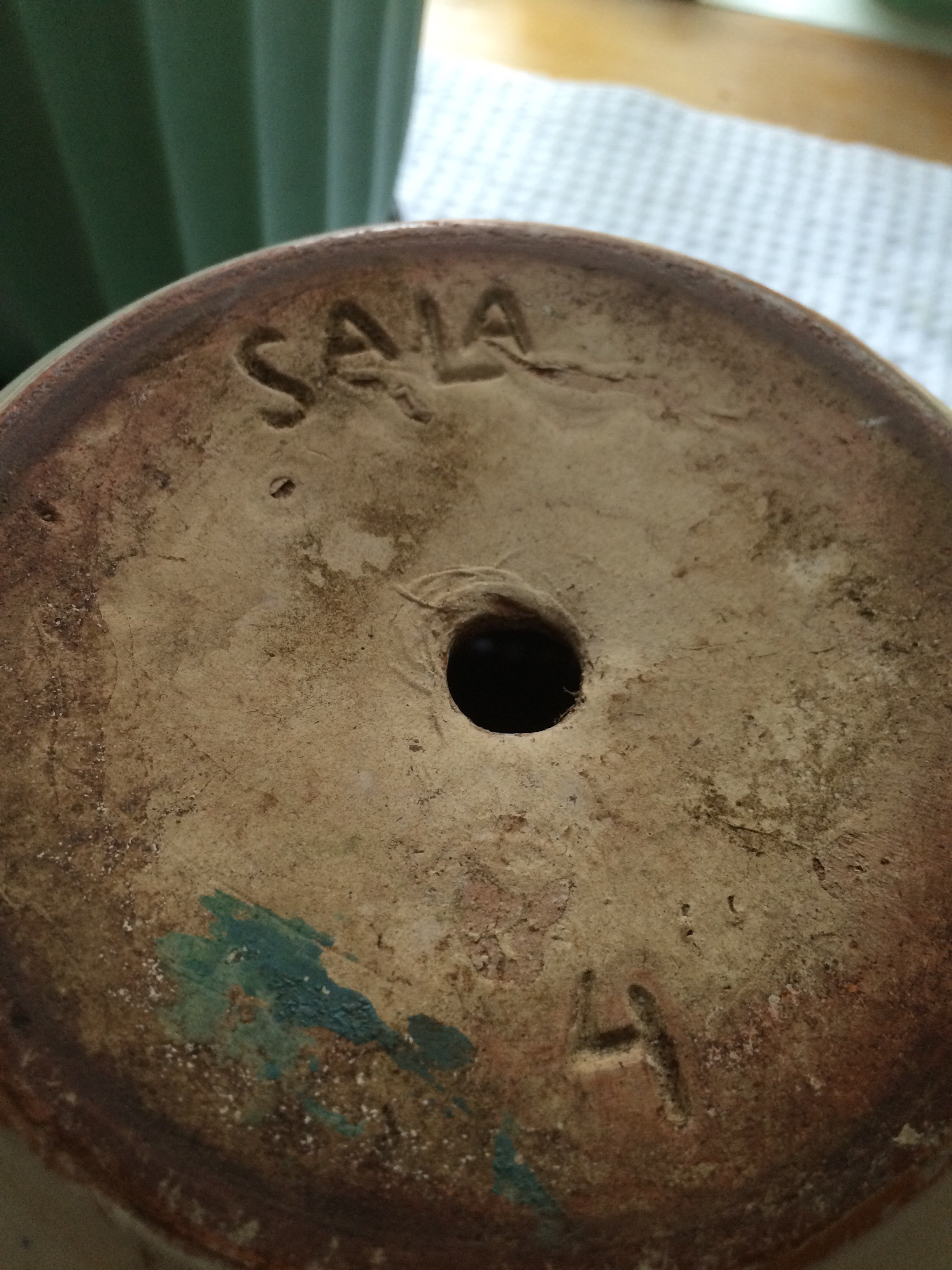 Efter att varit till Heby o Backa för att plocka jordgubbar stannade vi till på ett Loppis och där hade jag turen att hitta en stor blomkruka från Sala,inte så vanligt precis,vi bor ju inte så långt från Sala så det känns kul att hitta,tyvär var den lagad men då blev ju priset bra också..