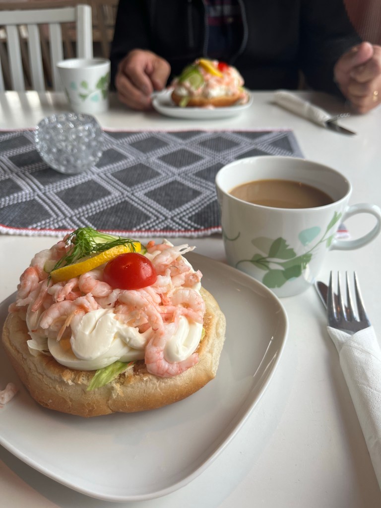 Innan vi åkte hem.. måste vi ju ha en räkmacka på Räkmackans dag.. stannade här för första gången på Faster Veras café i Tärnsjö.. kommer inte att bli sista gången lovar vi.. ett jätte mysigt och fräsch café med lite mat också och snygga inrednings saker fanns där.. jätte trevlig personal ..👍🎂☕️🧁🍤🥮