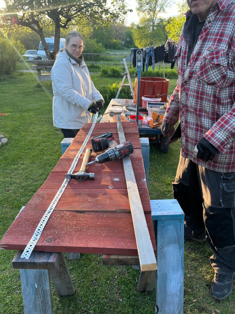 Ser ju inte så roligt ut.. men vi hade många plankor från ett gammalt staket så det fick bli lite pyssel av dom, dottern som var hos oss o mannen i huset ställde upp på min idé..