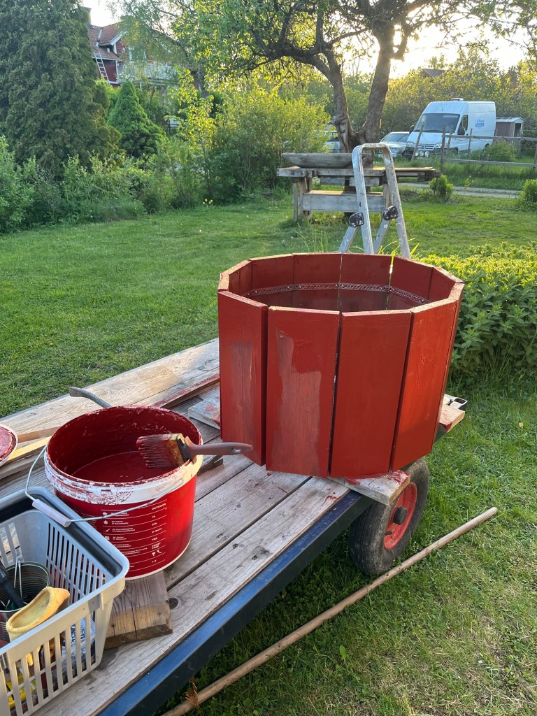 Nu smälter dom bättre in på gården där det mesta är målat med Falu rödfärg ..🌺