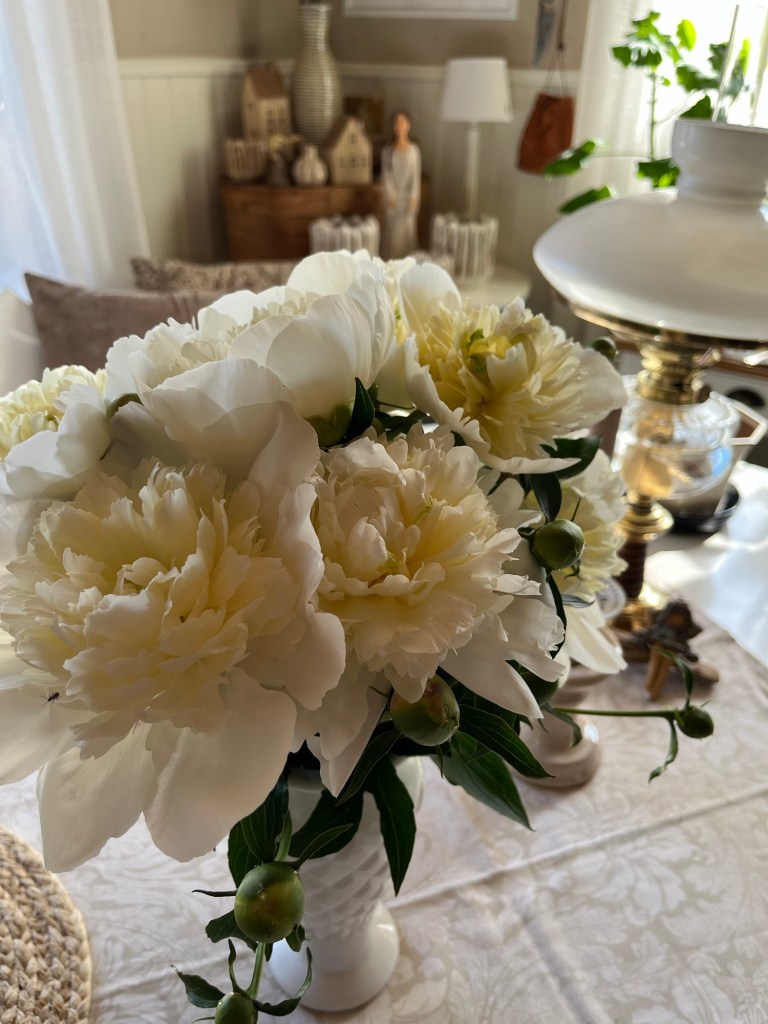 Lyx att få plocka hur mycket man vill hos grannen, vita Pioner🩷