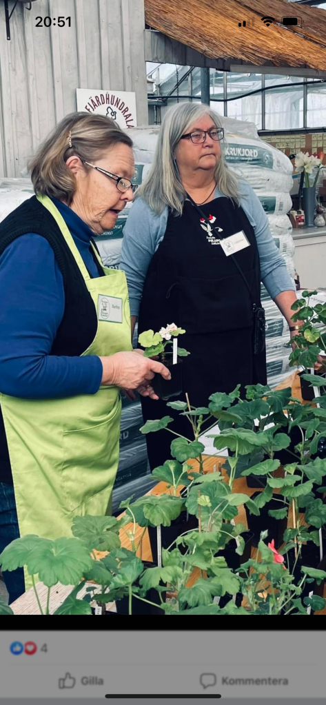 Idag var jag och hälsade på vid mitt jobb på Tuna trädgård där Svenska pelargonsällskapet stod och sålde sina sticklingar och gav goda blområd👍snart börjar jag jobba för säsongen och jag längtar verkligen , så skönt att få komma dit och få lite vårfeeling bland alla sticklingar och planteringar..